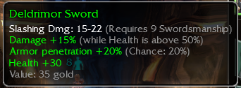 deldrimor tactics shield req 9 tactics, +30 health, phy dmg -5 -chance 20% (green)